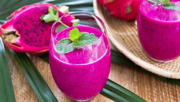 Soms is drakenvruchtensap gemakkelijker verkrijgbaar dan heel fruit. Sap bevat belangrijke vitamines en mineralen, maar mist de vezels die fruit biedt. Bovendien zijn sommige drakenfruitdranken eigenlijk mengsels van verschillende soorten sap en kunnen ze aanzienlijke hoeveelheden suiker bevatten. Of ze worden op de markt gebracht als “drakenfruitaroma” maar bevatten eigenlijk geen drakenfruit.